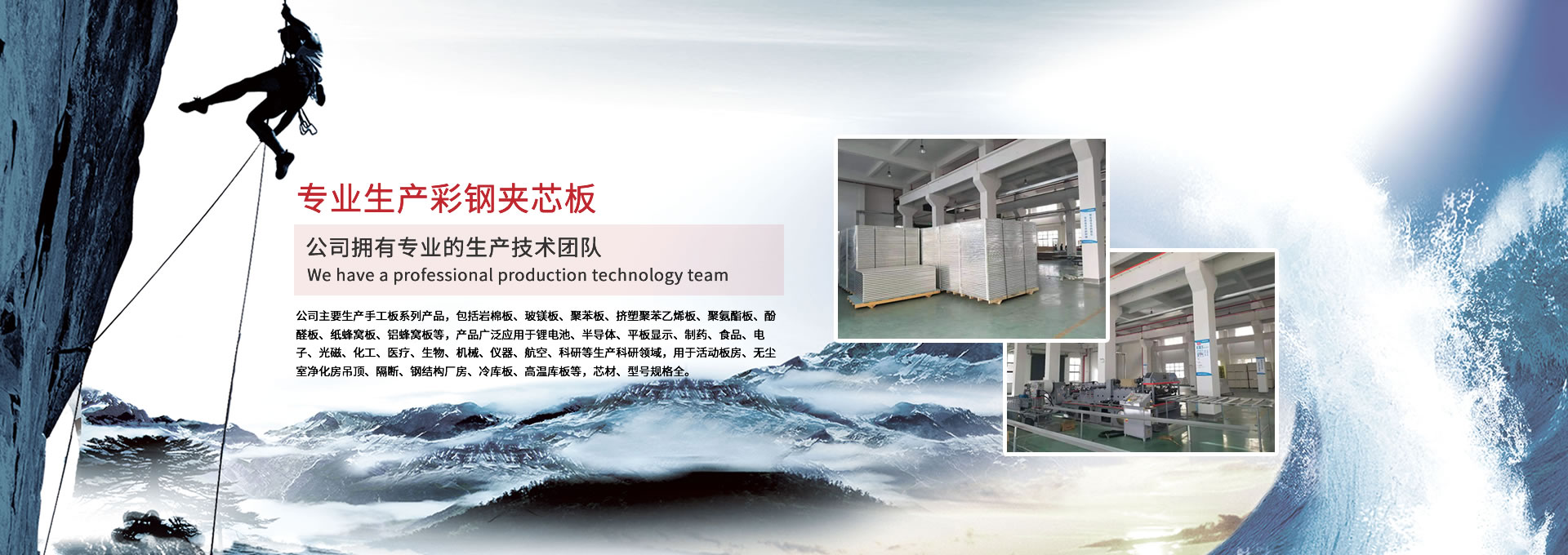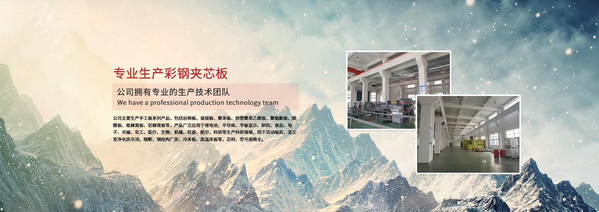 公司主要生產(chǎn)手工板系列產(chǎn)品,包括巖棉板、玻鎂板、聚苯板、擠塑聚苯乙烯板、聚氨酯板、酚醛板、紙蜂窩板、鋁蜂窩板等,產(chǎn)品廣泛應用于鋰電池、半導體、平板顯示、制藥、食品、電子、光磁、化工、醫(yī)療、生物、機械、儀器、航空、科研等生產(chǎn)科研領域,用于活動板房、無塵室凈化房吊頂、隔斷、鋼結(jié)構(gòu)廠房、冷庫板、高溫庫板等,芯材、型號規(guī)格全。 公司擁有專業(yè)的生產(chǎn)技術團隊,周到的服務保證,以“質(zhì)量至上、信譽至上、服務至上”為宗旨,為用戶提供合格的產(chǎn)品和滿意的服務,歡迎各界朋友參觀、指導!公司竭誠希望與各界朋友建立廣泛聯(lián)系,加強相互合作、共同發(fā)展!